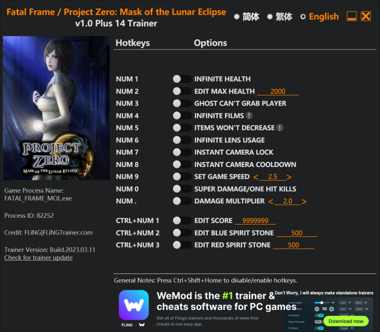 Fatal Frame Project Zero Mask of the Lunar Eclipse v1.0 Plus 14 Trainer.7z